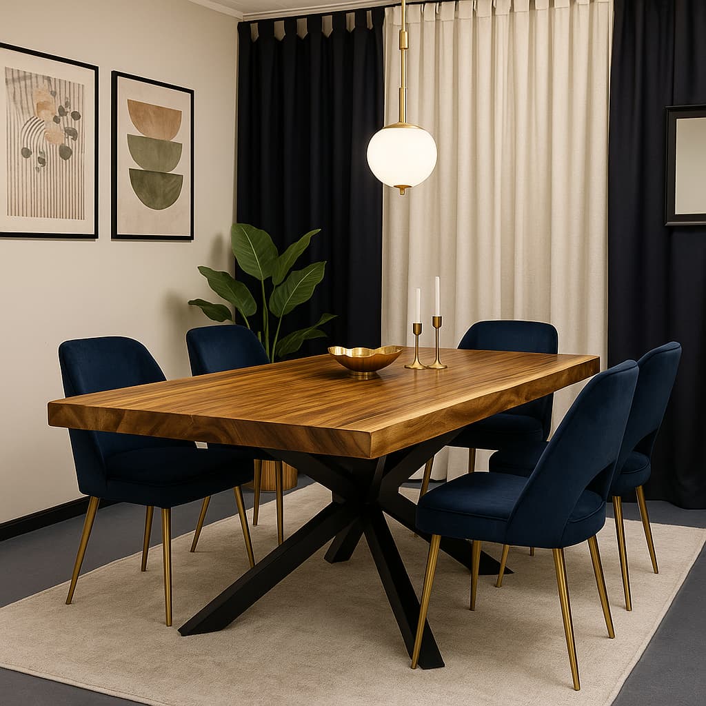 Modern Classic – połączenie ponadczasowej elegancji z nowoczesną prostotą. Charakteryzuje się symetrią, stonowaną paletą barw; biel, beż czy szarość, oraz wysokiej jakości materiałami jak drewno, marmur i welur, a także dekoracyjnymi, ale subtelnymi detalami, takimi jak sztukaterie czy złote akcenty. Wnętrza te nawiązują do klasyki, ale bez przepychu, łącząc tradycyjne elementy z nowoczesnymi formami mebli i oświetlenia.