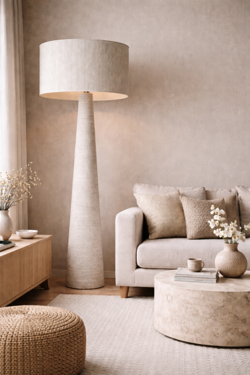 Konstrukcja zapewnia stabilność i miękkie, rozproszone światło, dzięki czemu lampa doskonale sprawdzi się jako oświetlenie strefowe w salonie lub przestrzeni hotelowej.
