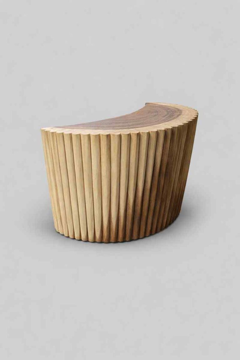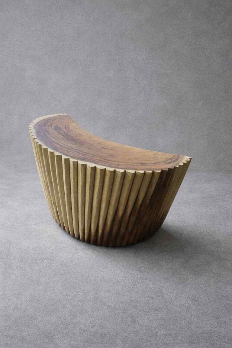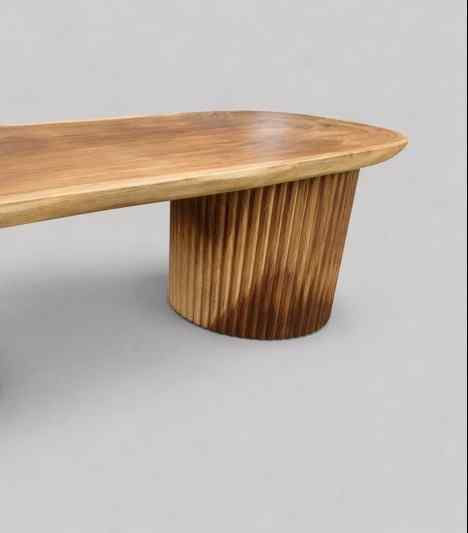 Ta ława to esencja naturalnego piękna i rzemiosła na najwyższym poziomie. Wykonana z litego drewna, z blatem stanowiącym jeden, unikatowy plaster drewna, zachwyca autentycznością i niepowtarzalnym rysunkiem słojów, który czyni każdy egzemplarz absolutnie wyjątkowym. Ręcznie rzeźbione nogi są nie tylko solidną podstawą, ale też dekoracyjnym elementem, który nadaje całości rzeźbiarskiego charakteru. Powierzchnia wykończona wysokiej jakości olejo-woskiem podkreśla głębię koloru drewna, chroni je i wydobywa jego naturalną szlachetność.