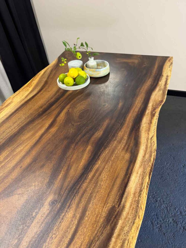 Dla miłośników naturalnego piękna tworzymy stoły z naturalną krawędzią live edge, w których każdy detal ukazuje niepowtarzalny charakter drewna. To meble jedyne w swoim rodzaju – każdy blat zachowuje unikalny rysunek i kształt, opowiadając historię natury zamkniętą w szlachetnej formie. Taki stół to wybór dla osób, które chcą podkreślić indywidualny styl swojego wnętrza i otaczać się przedmiotami z duszą.