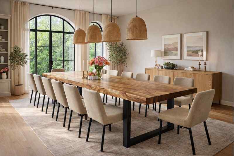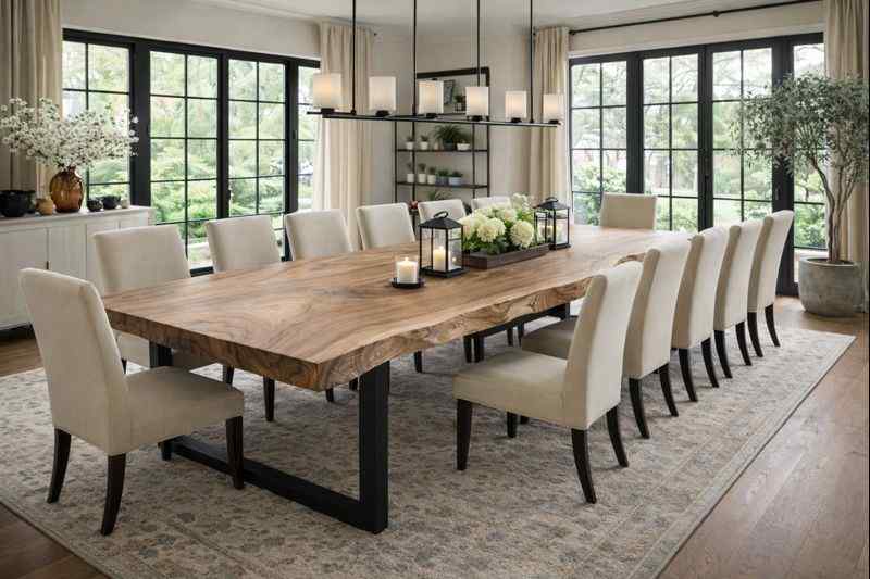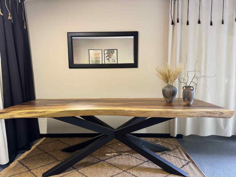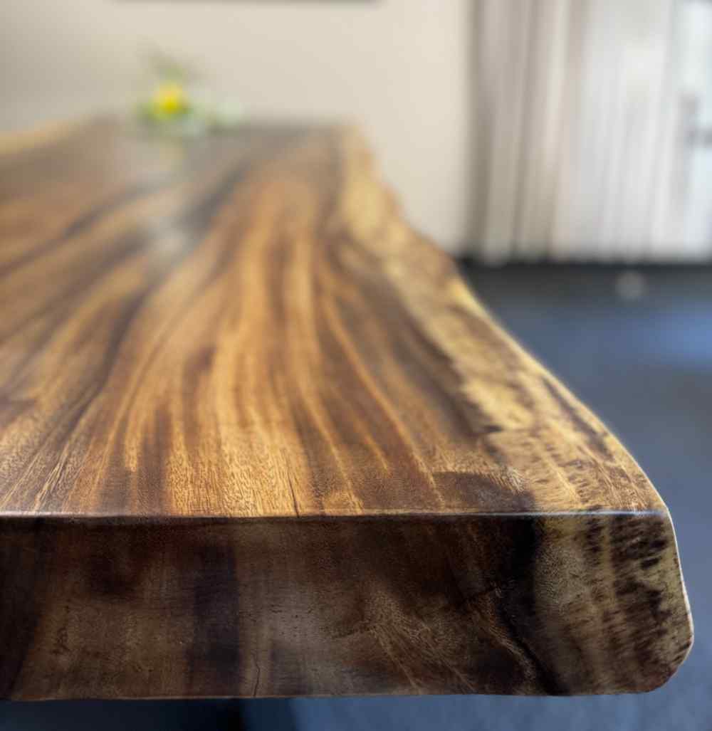 Dla miłośników naturalnego piękna tworzymy stoły z naturalną krawędzią live edge, w których każdy detal ukazuje niepowtarzalny charakter drewna. To meble jedyne w swoim rodzaju – każdy blat zachowuje unikalny rysunek i kształt, opowiadając historię natury zamkniętą w szlachetnej formie. Taki stół to wybór dla osób, które chcą podkreślić indywidualny styl swojego wnętrza i otaczać się przedmiotami z duszą.